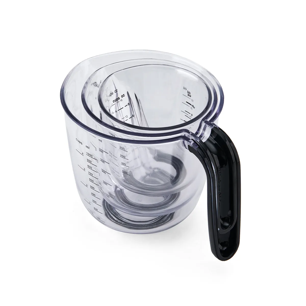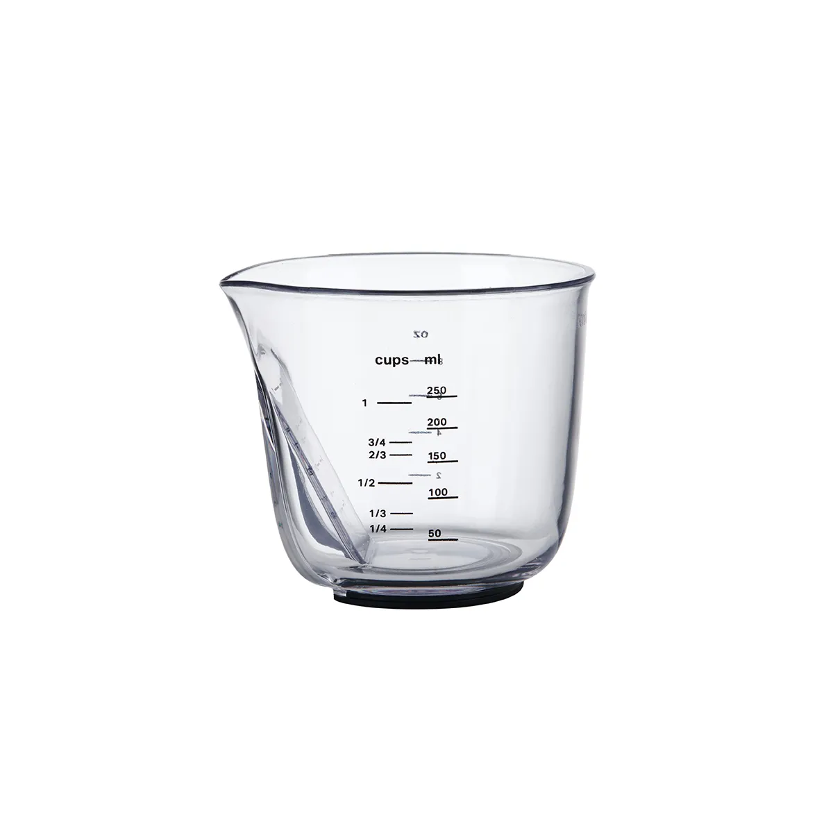 - 2 większe miarki (1000ml, 500ml) posiadają boczny, antypoślizgowy uchwyt do łatwego trzymania i przenoszenia,