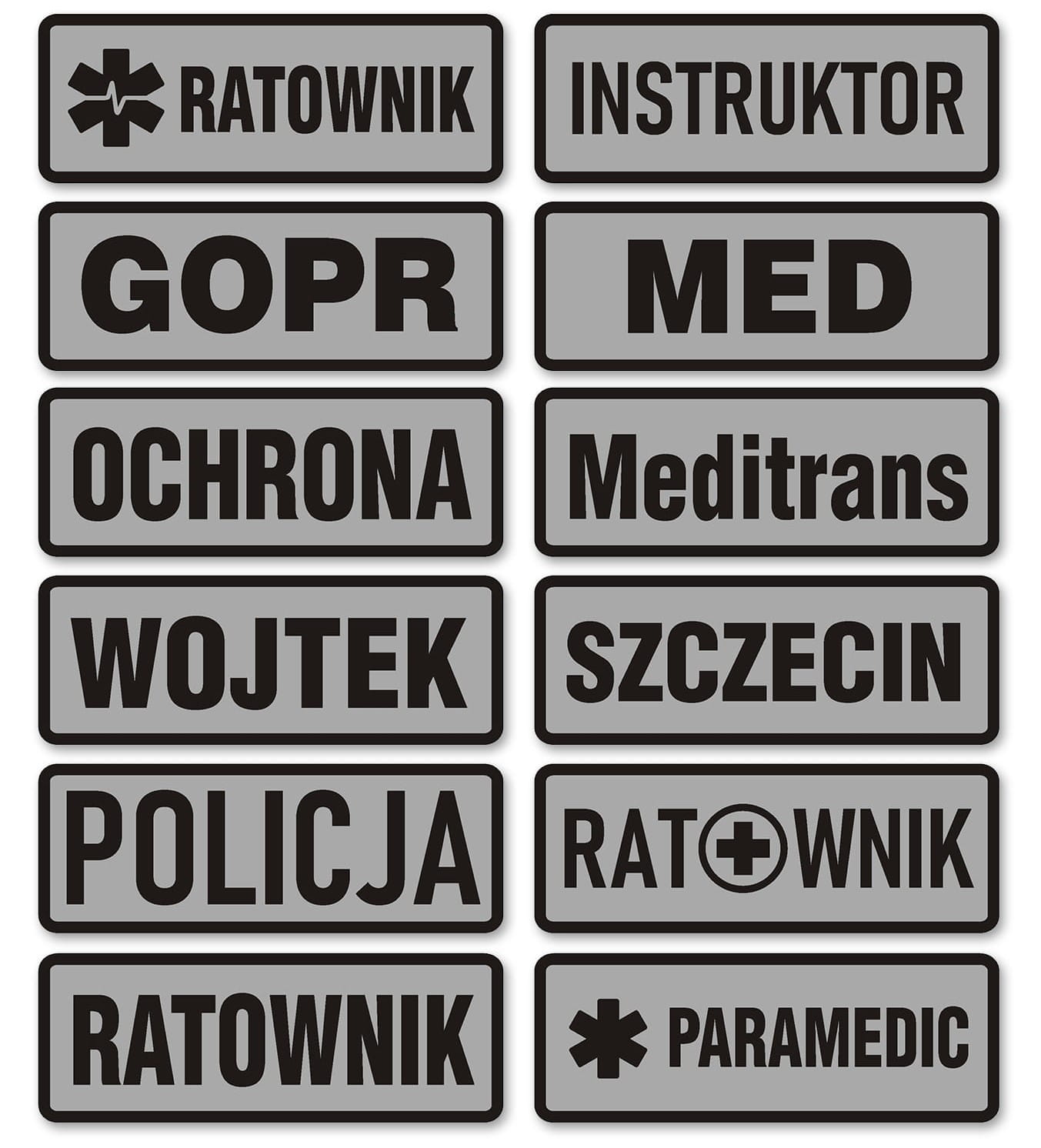 Odblaskowy emblemat podszyty rzepem (haczyki) - z 1 linijką tekstu, imieniem lub nazwiskiem albo dowolną funkcją,