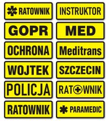 Emblematy funkcyjne, imienne, z nazwą organizacji ułatwiają pracę na miejscach nagłych wypadków i zdarzeń.