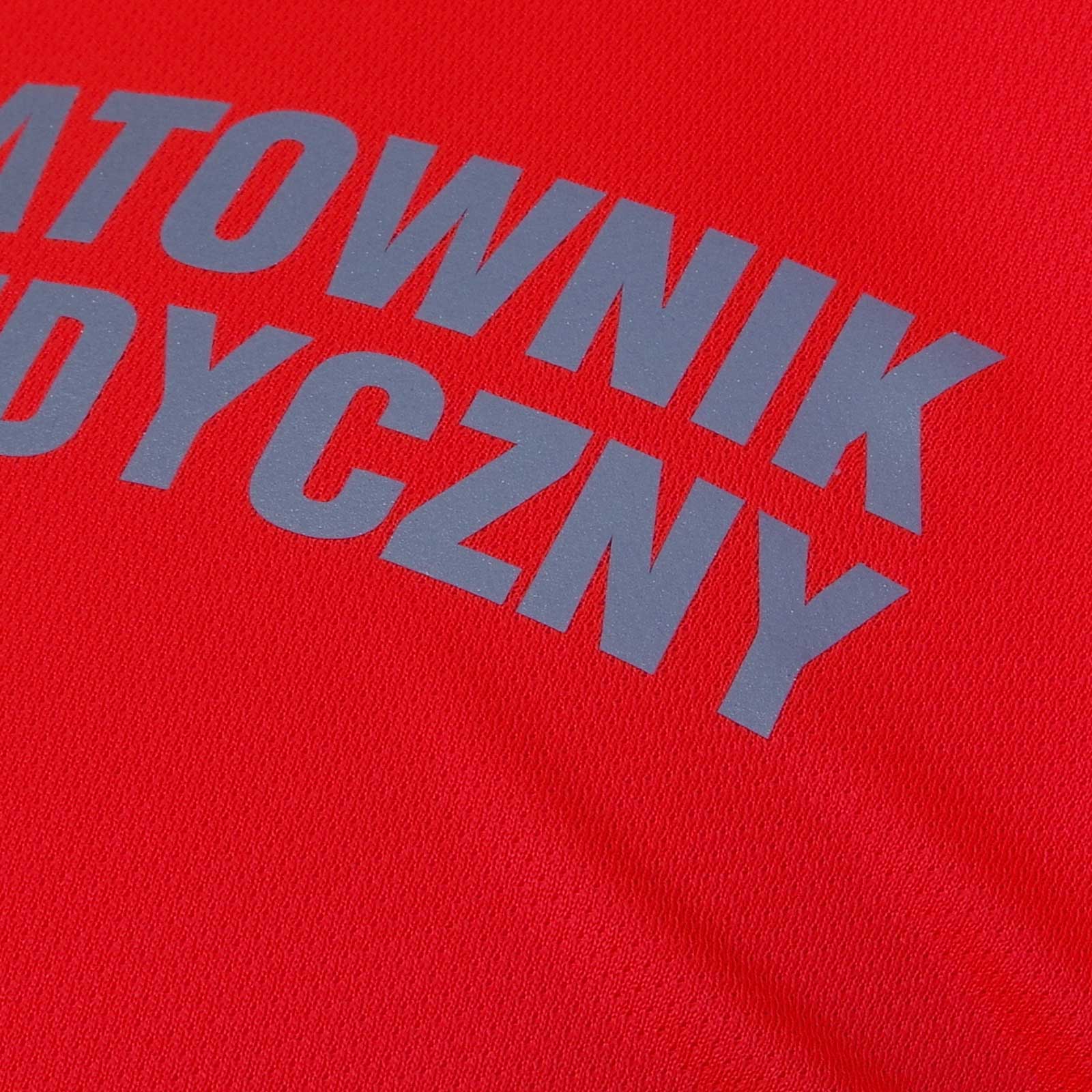 Wykonana z najwyższej jakości materiałów + bardzo trwałe nadruki + kolor czerwony fluorescencyjny zgodny z rozporządzeniem Ministra Zdrowia