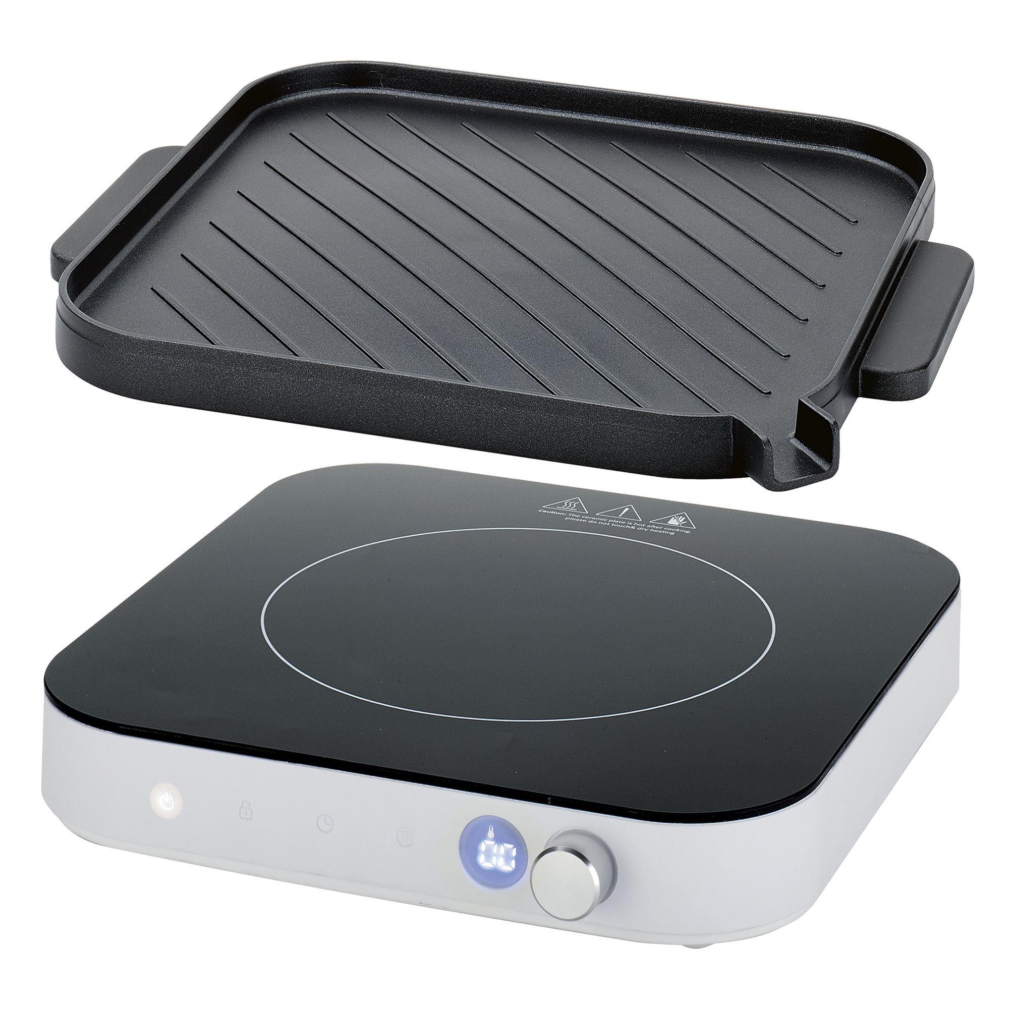 Kuchenka indukcyjna z dołączoną płytą grillową.