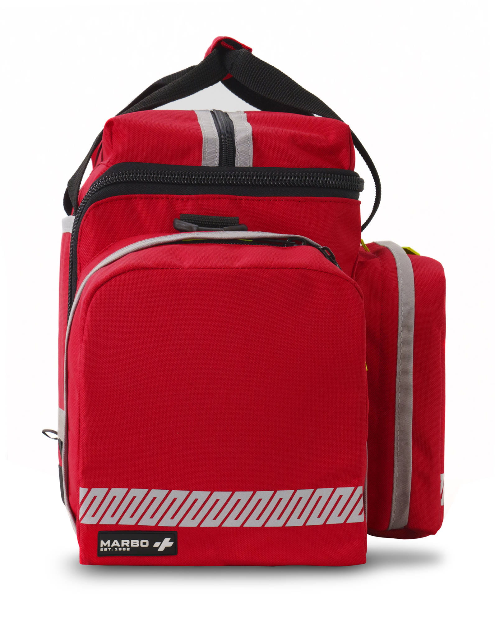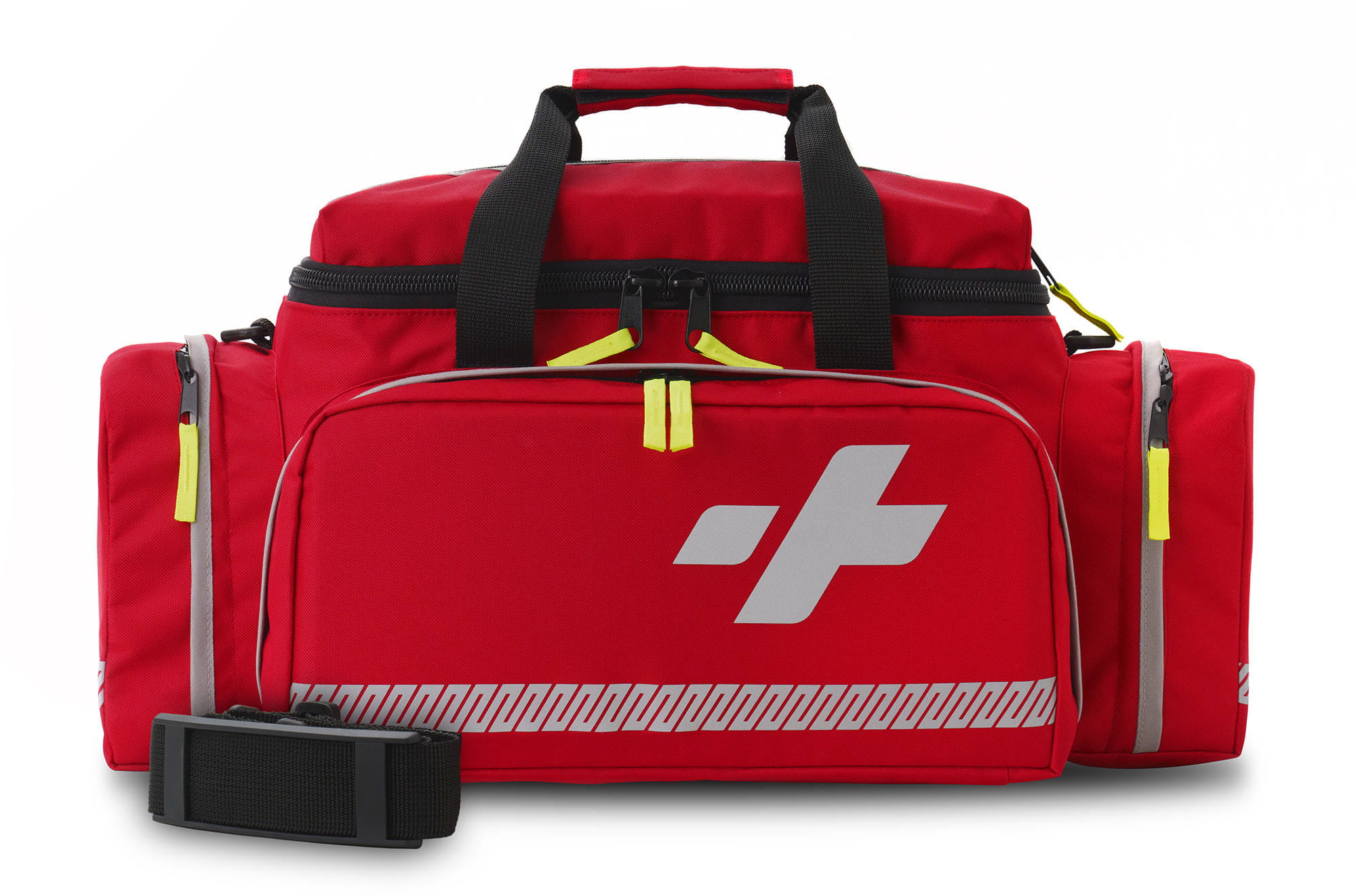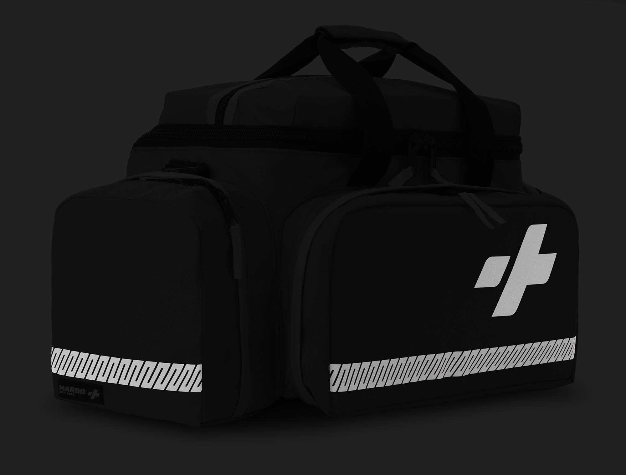Całość torby uzupełniają elementy odblaskowe, które znacząco poprawiają widoczność ratownika w nocy.