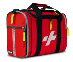 Całość torby uzupełniają elementy odblaskowe, które znacząco poprawiają widoczność ratownika w nocy.