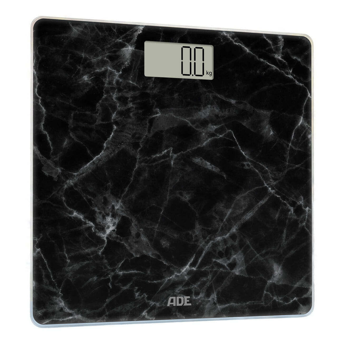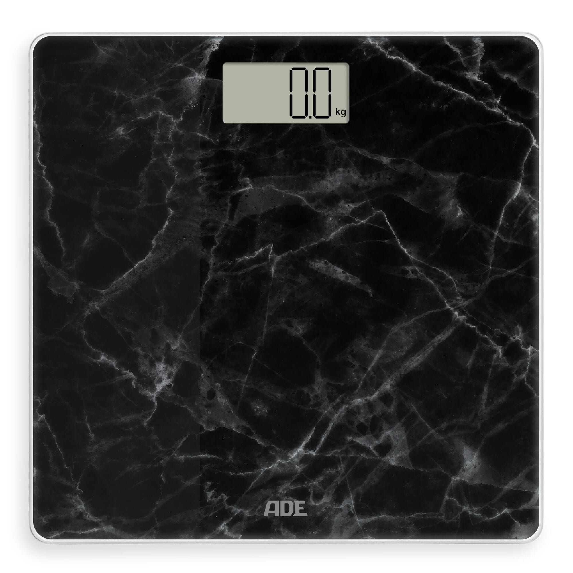 Waga łazienkowa, do 180 kg, 30 x 30 cm, marmurowy wzór, czarna / ADE