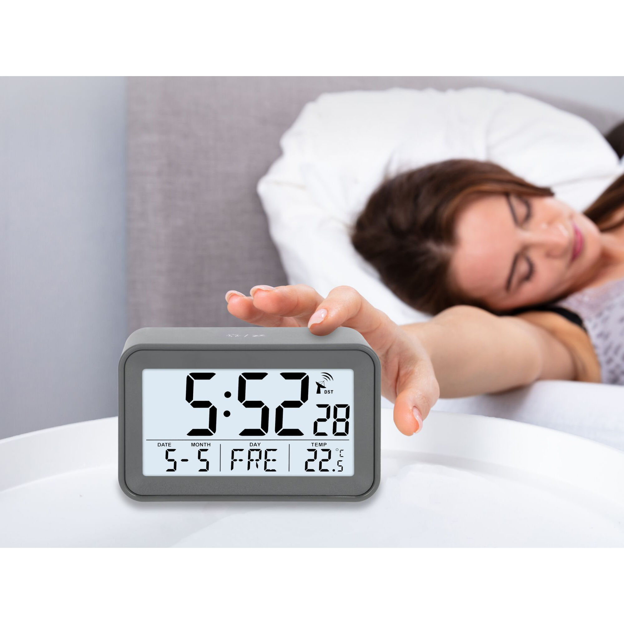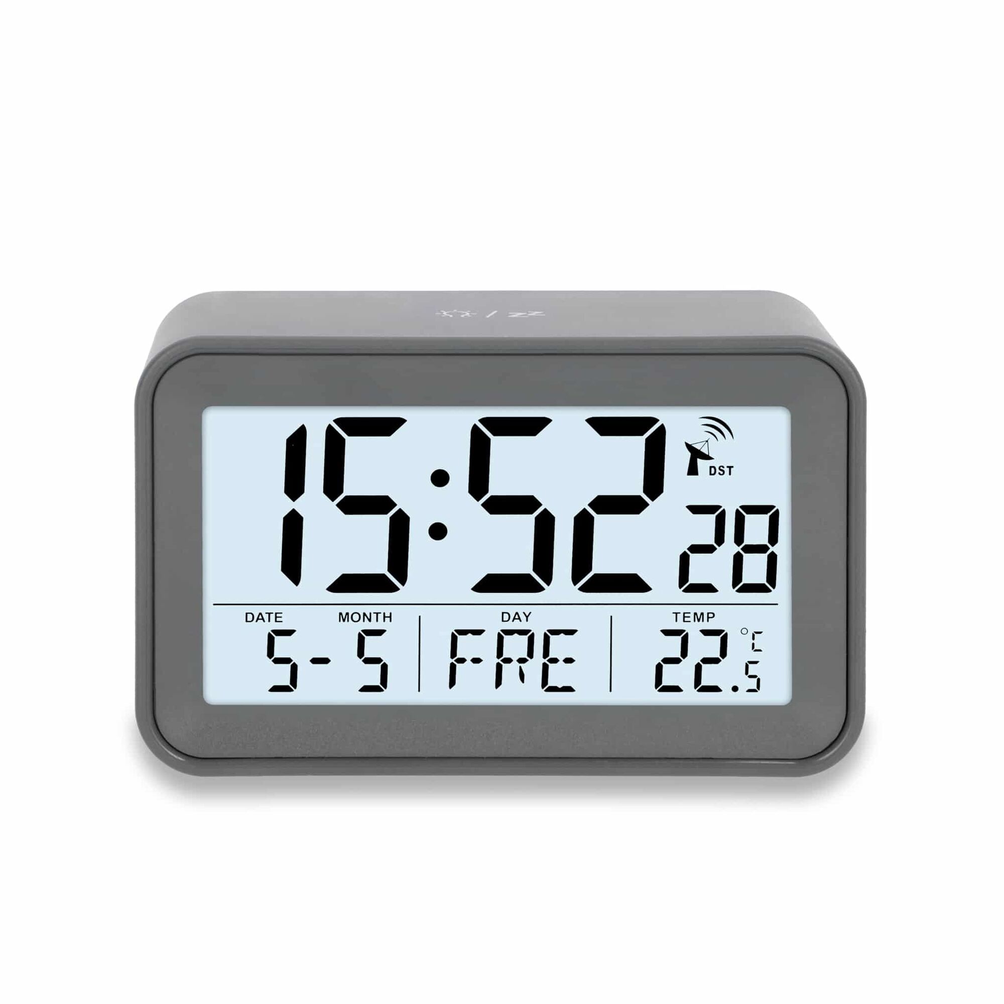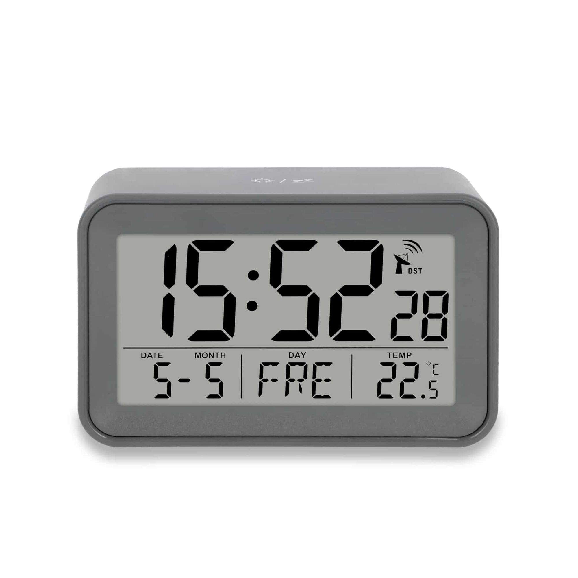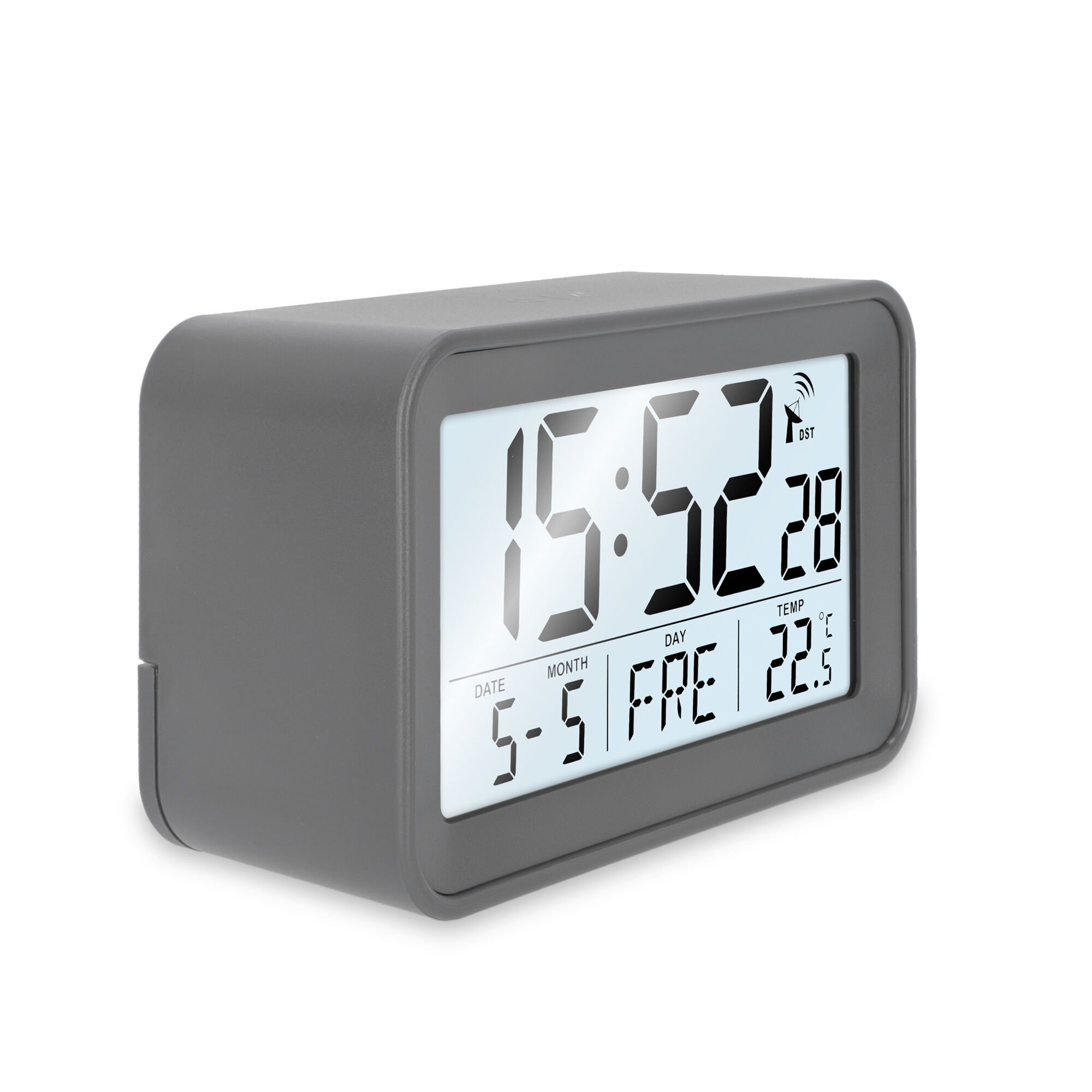 Zegar elektroniczny z kalendarzem i termometrem ADE, 10,5 x 6,5 x 4 cm, szary