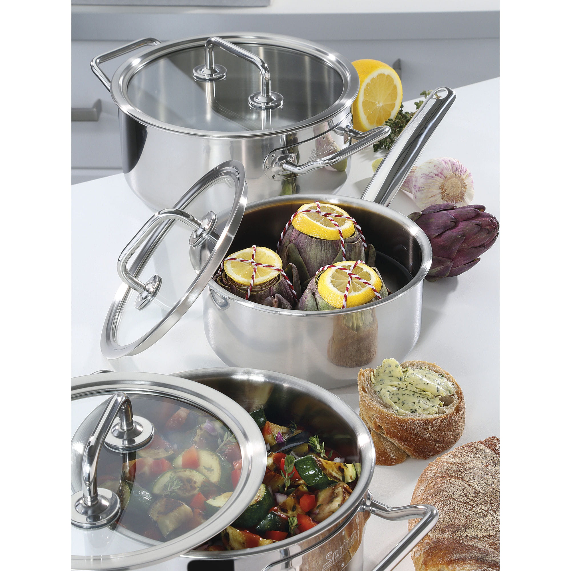 Zestaw garnków, 5 el., stal nierdzewna 18/0 / Spring