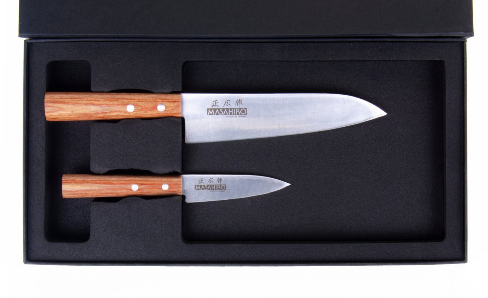 Zestaw Masahiro w opakowaniu ozdobnym składający się z noży: Sankei Chef 180mm oraz Sankei Paring 90mm. Taki skład noży to niezbędne minimum, które powinno znaleźć się w każdej kuchni, dodatkowo zapakowane w piękne pudełko tworzą idealny zestaw na prezent.